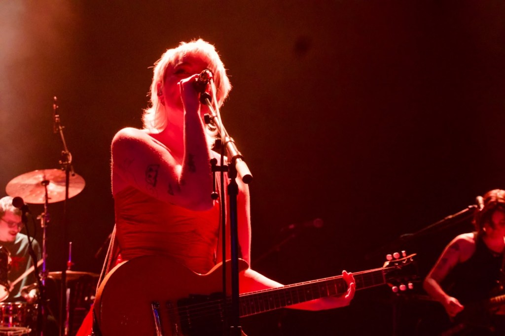 The band’s stage presence was particularly notable, and Dawson’s outfit was perfect for taking photos; her bright red dress was a great contrast with her reflective white hair colour and, production-wise, the lightwork clearly worked in the band’s favour.