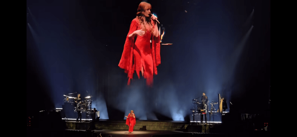 The band’s sixth album Everybody Scream was released last year and in promotional interviews, Florence delighted in explaining its 31st October launch date as: Florence and The Machine releases Everybody Scream on Halloween. In an interview with Nick Grimshaw and Annie Mac, she explained that ‘the album is about life… death… definitely a darker album.’ She researched extensively for the album, delving into witchcraft, mysticism and magic. She was interested in early intersections between magic and religion as well as influences from Irish and English folk stories and mythology and swapping playlists with her mate Abigail Morris from The Last Dinner Party. Florence has also been touched by personal tragedy, such as her traumatic ectopic pregnancy in 2023 and with her continuing view of the misogynistic construct of the industry she has to work in, she has delivered a powerful punch of an album.